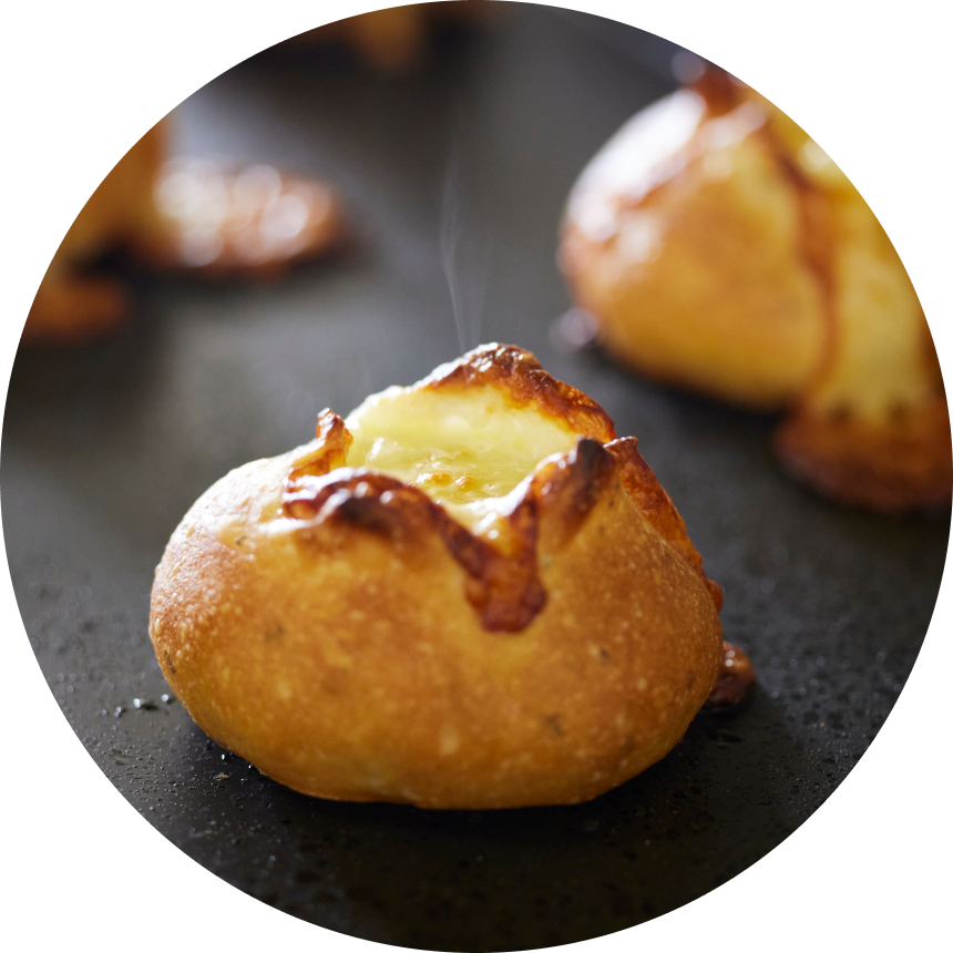 パンフォーユー独自の特許取得済み冷凍技術により、パンのおいしさをそのまま閉じ込めました。リベイクするだけで、いつでも手軽に焼きたてのおいしさがよみがえります。
