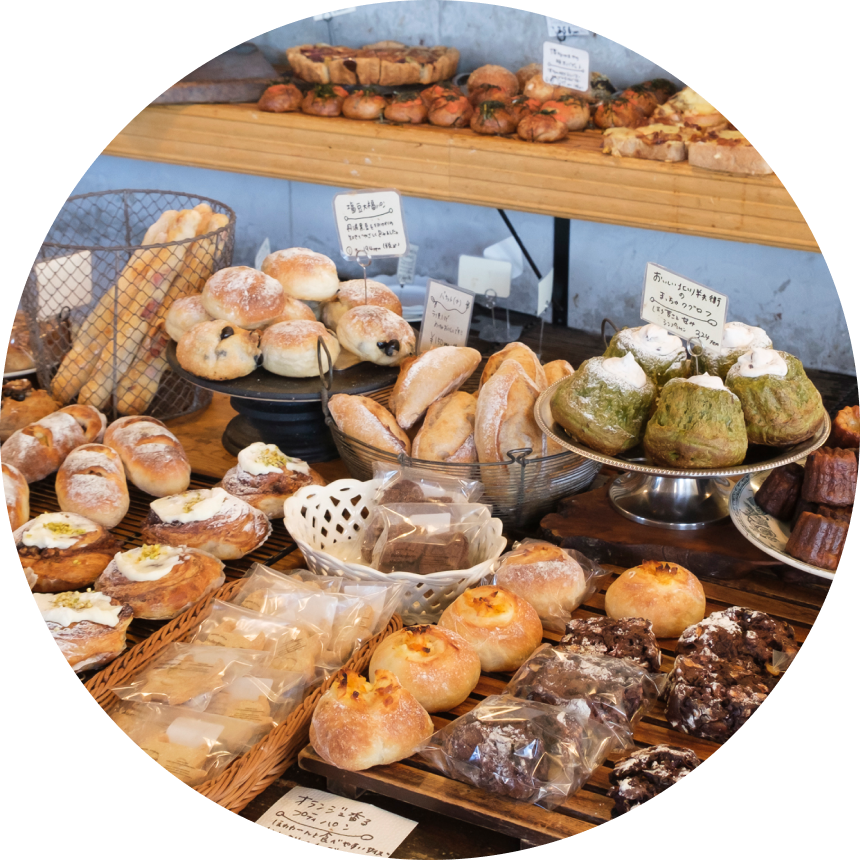 地域の食材を使ったパンや、素材にこだわったパンなど、200種類以上をご用意。同じパンでも複数の種類があり、用途やシーンに合わせてお選びいただけます。